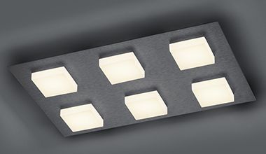It is contemporary and at the same time follows all the guidelines of modern design: the Luno LED ceiling light provides six squares of light on a rectangular ceiling panel made of anodized aluminium - for uniform general lighting. Also included: the B-Link radio remote control.