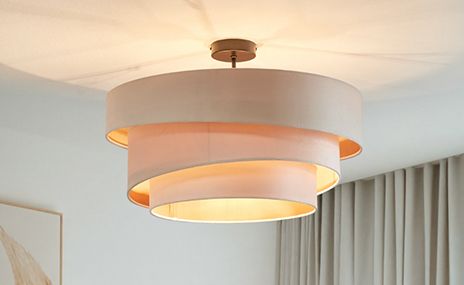 Ceiling lights in cream, off-white or ecru provide pleasant ambient lighting and match many interior styles - from a minimalist look to a modern country house. Whether with a textile shade, discreet fan design or as a multi-flame version: light colours bring calm into the room and can be ideally combined with natural materials and soft colours.