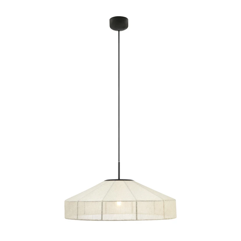 The Alia hanging light combines Scandinavian elegance with functional versatility. Made from high-quality linen and sturdy iron, the lamp fits seamlessly into various living spaces such as the living room, dining room and bedroom. The combination of a beige lampshade and black suspension system gives the lamp a timeless aesthetic that adds accents to both modern and classic interior styles.