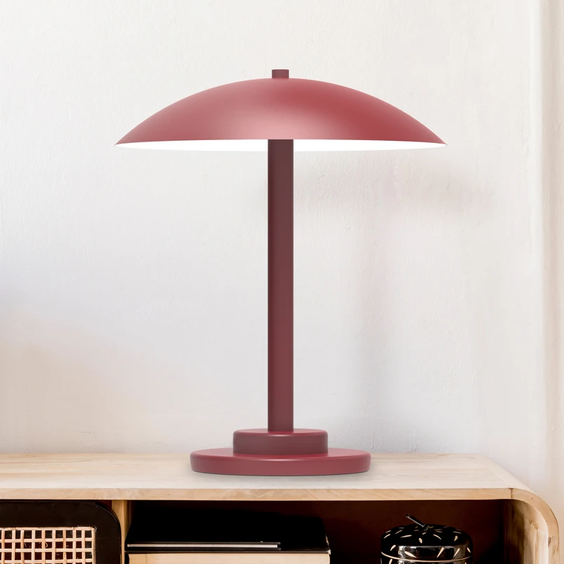 Aluminor Chicago table lamp, round lampshade, red