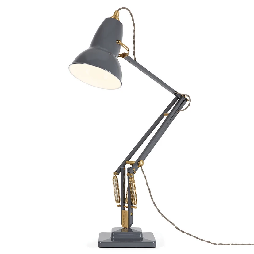 Original 1227 LED table lamp with brass details The Original 1227 LED table lamp is highly functional and has a new, very aesthetic look: the spring-loaded lamp can be adjusted in three positions, allowing it to be adapted to the individual work situation at any time. Visually, it impresses with its Ikon design, which is based on a design by industrial designer George Carwardine from the 1930s and caused a worldwide sensation. Eye-catching details have been added: the shade cap, spacers and fittings are in brass. A table lamp for offices and other work areas where the light needs to be precisely adjusted. The Original 1227 table lamp is supplied with an LED bulb with an E27 base, which emits a cosy, warm white light. Equipped with a switch on the textile cable. Note: When choosing a bulb, make sure that it weighs between 25-60 grams to ensure that the table lamp remains perfectly balanced.