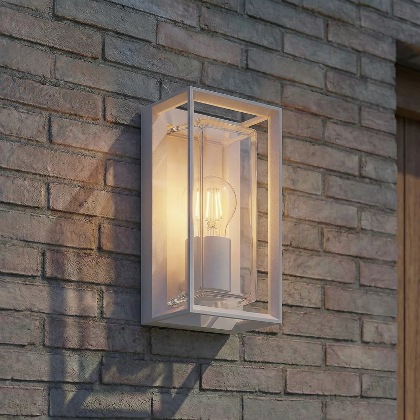 The Ismera outdoor wall light combines modern design with functional robustness. Made from high-quality metal and glass, the light comes in an elegant white that blends seamlessly into contemporary outdoor areas. With IP code 65, it is optimally protected against dust and water, making it the ideal choice for balconies and terraces. This light not only offers aesthetic appeal, but also the necessary durability for outdoor use.