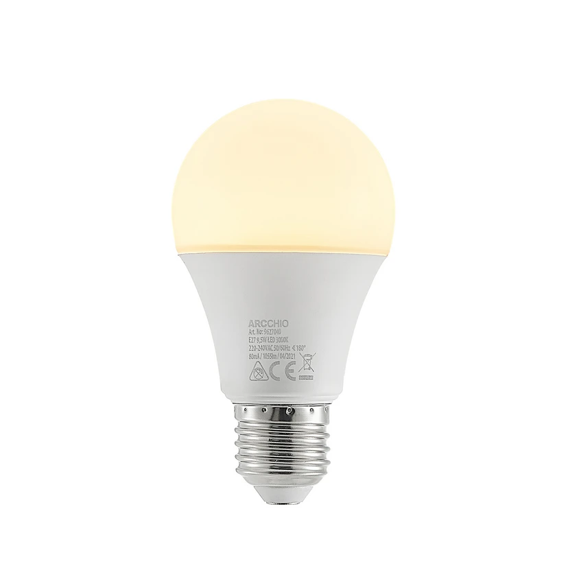 LED bulb E27 A60 9.5W made of plastic, opal with warm white light colour (3,000 K) The brightness of this LED bulb corresponds to that of a traditional light bulb with a power consumption of 75 W, making this bulb an energy-saving alternative for use in a wide variety of areas - not dimmable