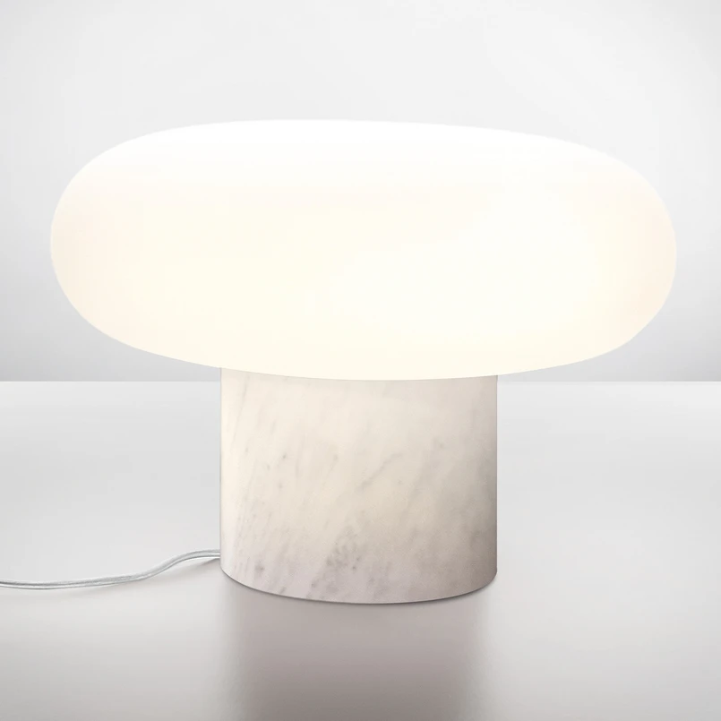 A small table lamp with great effect, that is this version of the LED table lamp Itka designed by Naoto Fukasawa. The base and shade both equally attract the attention of the viewer. The cylindrical base is crafted from light marble; it carries a lens-shaped shade. The white glass is mouth-blown according to ancient tradition and gently radiates the warm white light of the LEDs to all sides. This creates an appealing additional lighting that ideally complements numerous interior areas - from private living rooms or bedrooms to restaurants.