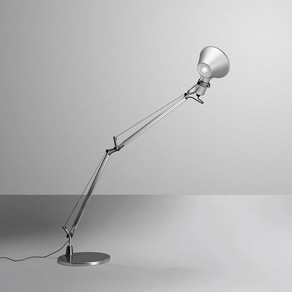 Noble classic - Tolomeo Midi For fans of design classics, a Tolomeo is a must at home. This successful model from Artemide has been adorning offices, hotel lobbies, showrooms and private living areas for over 30 years. It is also a popular prop for film and television. In the meantime, the Tolomeo has developed into a large, successful luminaire family and is not only available as a table lamp, but also as a floor or wall light. Equipped with modern LED technology, the Tolomeo Midi shines in a pleasant, warm white light. Its head and arms are extremely flexible. The joints on the body of the luminaire can be moved steplessly using a sophisticated rise and fall mechanism. A special spring balancing system then ensures that the arms remain in place. The head of the luminaire is also adjustable and can be rotated in all directions. This enables optimum and glare-free light alignment. There is also a switch directly on the head that allows the Tolomeo light to be infinitely dimmable.