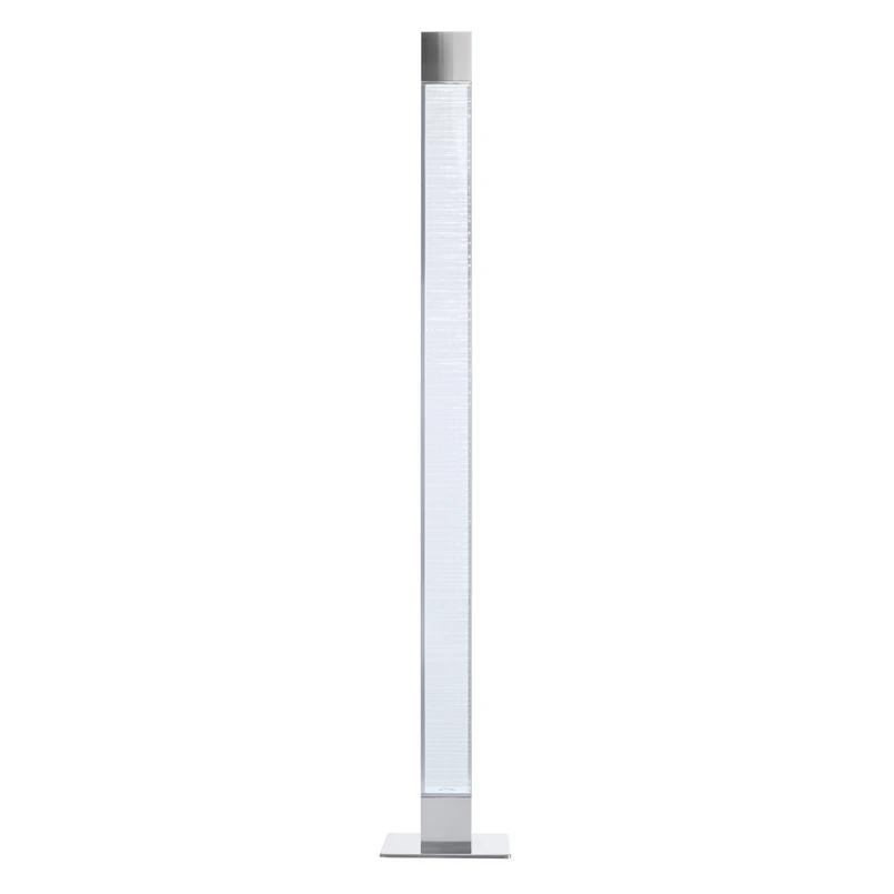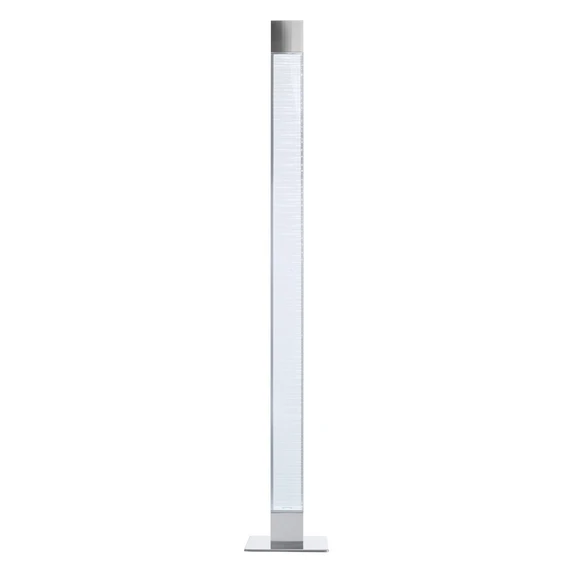 The modern floor lamp has a steel and aluminum frame and a columnar shade made of transparent, gavaged methacrylate. The universal white light, which is effectively emitted into the environment, can be dimmed via the appropriate Artemide app. Control of the entire luminaire, including the Integralis® technology, is also possible via the app.
