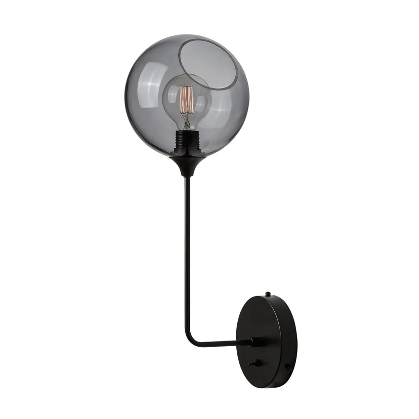 Ballroom Long wall light with mouth-blown glass lampshade The Ballroom Long wall light is ideal for lighting above the bedside table, in the hallway or wherever a beautiful wall light is required. A painted iron wall mount serves as the base, to which the spherical lampshade is attached via an arm that curves upwards into the room. A switch (on/off) is integrated directly into the bracket and the lampshade itself is made of hand-blown glass. There is space inside for an E27 bulb (not included, see accessories). A matt white bulb is also recommended for the white version, while a bulb with visible filaments should be selected for all other colour variants, as the bulb can be seen through the glass shade. Ballroom Long is an excellent addition to the DESIGN BY US series of the same name and serves as an elegant design object, even when the light is not switched on. Note: Each hand-blown glass light is unique. Inclusions in the glass (bubbles) up to 0.5 cm in size are possible.
