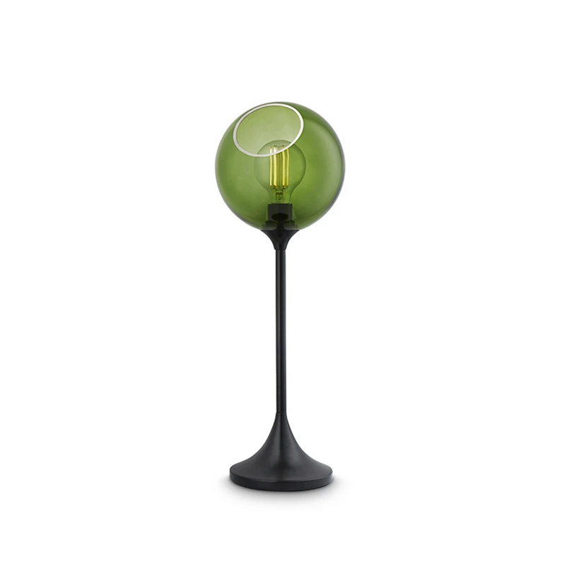 Integrated dimmer: Ballroom table lamp with lampshade made of hand-blown glass The artistically designed Ballroom table lamp from DESIGN BY US is a welcome highlight anywhere. The base is made of monochrome painted iron. The spherical lampshade made of mouth-blown, hand-painted glass sits enthroned on this. An E27 bulb (not included, see accessories) fits inside the lampshade. A matt white bulb is also recommended for the white version, while a bulb with visible filaments should be selected for all other colour variants, as the bulb can be seen through the glass shade. You should always choose a dimmable bulb, as it is possible to regulate the intensity of the light using the switch integrated in the plug cable. The Ballroom table lamp is always an elegant design object, even when the light is not switched on. Note: Each hand-blown glass lamp is unique. Inclusions in the glass (bubbles) up to 0.5 cm in size are possible.