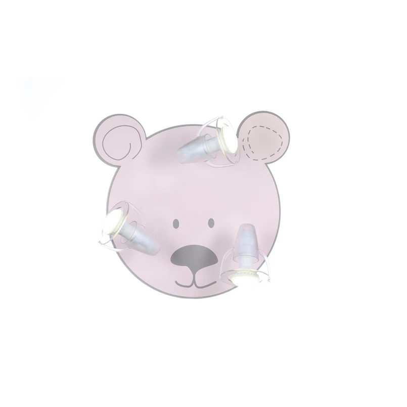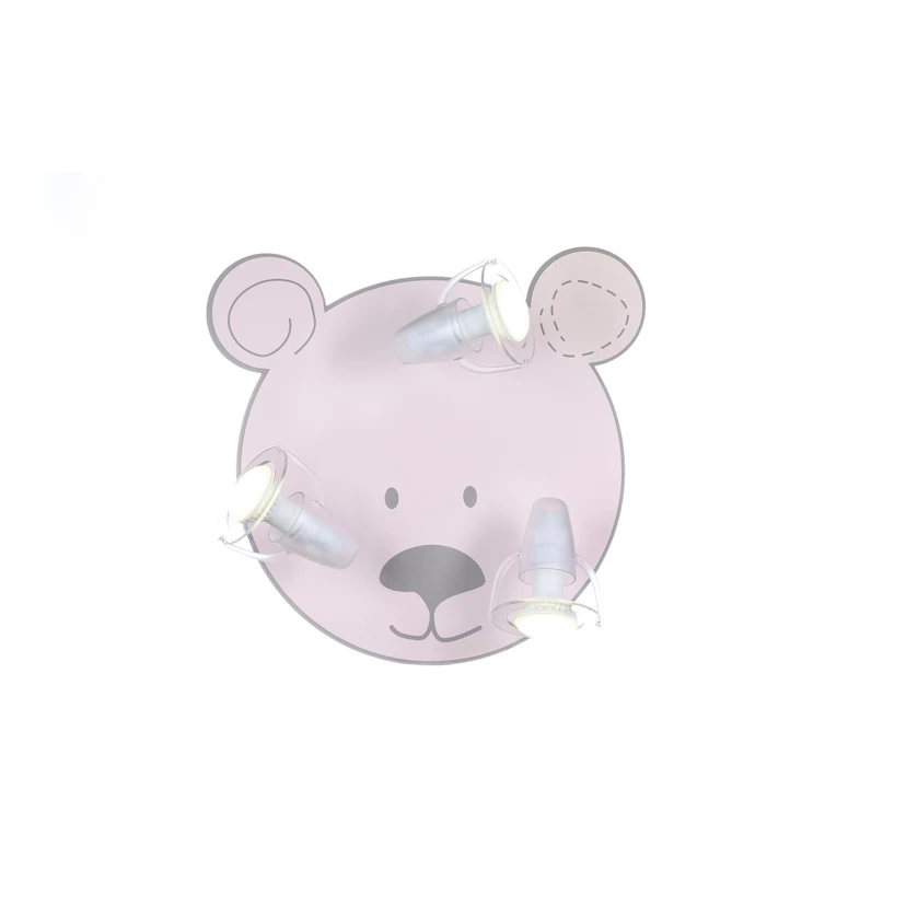 Bear ceiling light with three adjustable spots The 3-bulb Bear ceiling light features the head of a bear with ears and a printed bear's face. The light is made of wood in Germany and is equipped with three heads in the form of swivelling and tilting spotlights made of transparent plastic. These enable the targeted lighting of different areas in the children's room and can be fitted with reflectors with an E14 socket up to a wattage of 40 W. The bulbs are not included - please select and order separately.