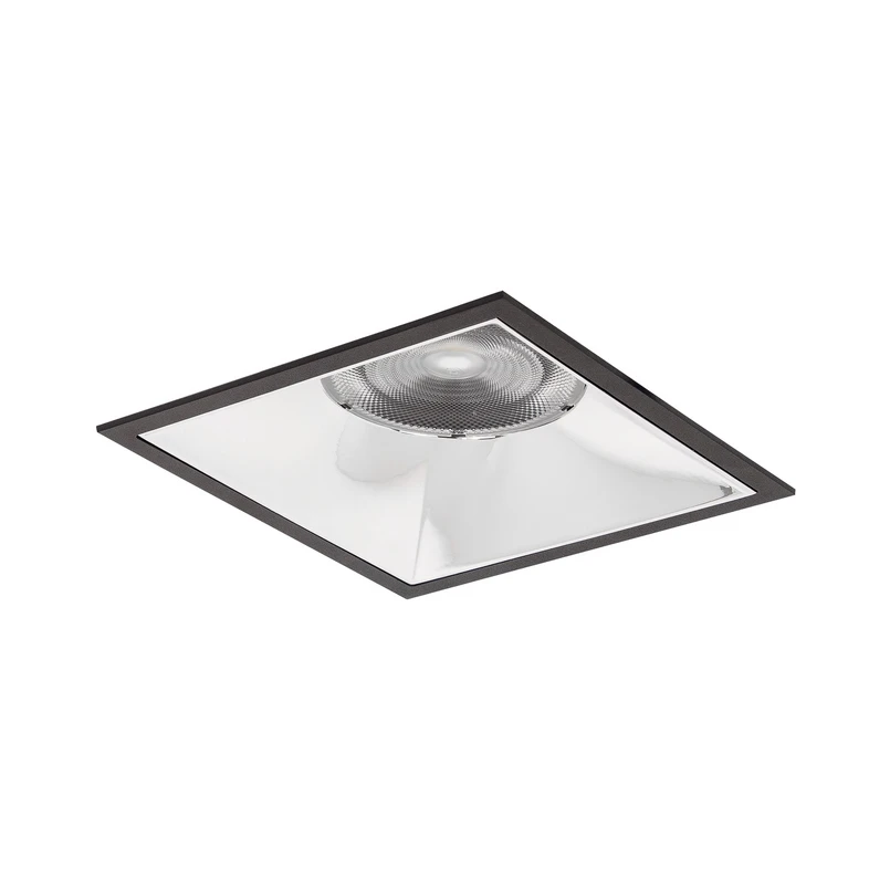 Apollo Maxi LED recessed ceiling spotlight in angular shape with smooth reflector This Apollo Maxi LED downlight in square shape can be mounted in the ceiling without tools thanks to the installation springs and is characterised by very good quality of light. This is ensured by the silver reflector with rotationally symmetrical deep-wide beam light distribution and the transparent plastic cover. The built-in LEDs also produce light with a particularly good colour rendering index (CRI >90) - service life L80/B10 at 25 °C: 50,000 h, service life L80/B50 at 25 °C: 50,000 h - housing material: aluminium / glass / plastic - permissible ambient temperature (ta): -20 °C - +25 °C - with electronic ballast, switchable (not dimmable)