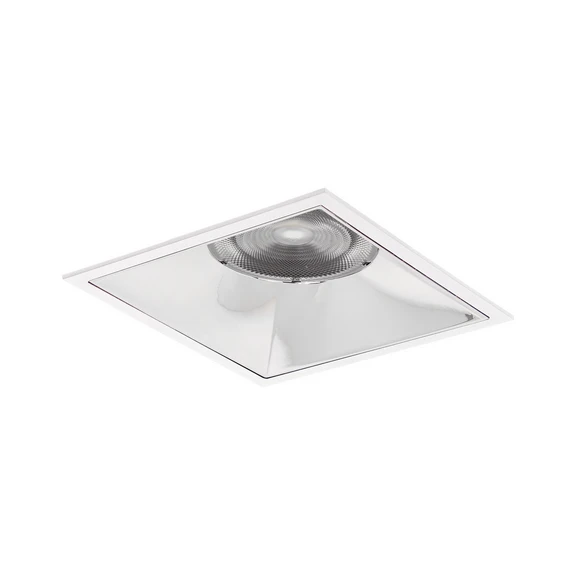Apollo Maxi LED recessed ceiling spotlight in angular shape with smooth reflector This Apollo Maxi LED downlight in square shape can be mounted in the ceiling without tools thanks to the installation springs and is characterised by very good quality of light. This is ensured by the silver reflector with rotationally symmetrical deep-wide beam light distribution and the transparent plastic cover. The built-in LEDs also produce light with a particularly good colour rendering index (CRI >90) - service life L80/B10 at 25 °C: 50,000 h, service life L80/B50 at 25 °C: 50,000 h - housing material: aluminium / glass / plastic - permissible ambient temperature (ta): -20 °C - +25 °C - with electronic ballast, switchable (not dimmable)