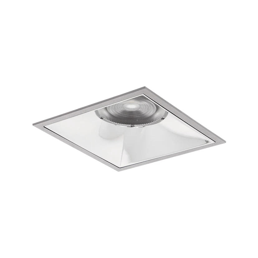 Apollo Mega recessed LED downlight, angular, smooth reflector The Apollo Mega recessed downlight can be mounted in the ceiling without tools thanks to the recessing springs. It is equipped with a highly specular, silver reflector with rotationally symmetrical, narrow-wide beam light distribution and the transparent plastic cover ensures optimum light distribution. Thanks to its variety of models, the Apollo downlight series is suitable for a wide range of lighting tasks, whether for setting precise lighting accents or for homogeneous illumination in corridors, offices, conference rooms, shops or museums or at reception or in private areas. The lights in the Apollo range are the perfect lighting tool for electricians, planners and designers. They meet all standards and are characterised by high system efficiency - general colour rendering index CRI > 90 - service life L80/B10 at 25 °C: 50,000 h, service life L80/B50 at 25 °C: 50,000 h - housing material: aluminium / glass / plastic - permissible ambient temperature (ta): -20 °C - +25 °C - with electronic ballast, switchable, not dimmable