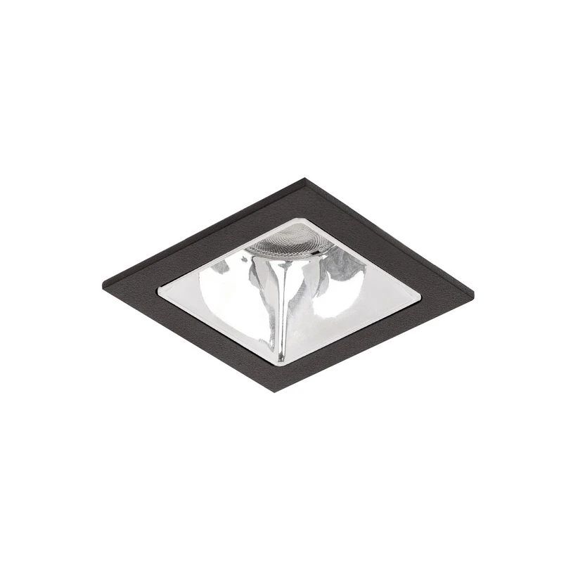 Apollo Micro LED recessed spotlight, smooth reflector, angular, DALI dimmable Equipped with recessing springs, the small, square Apollo Micro LED recessed spotlight can be installed in the ceiling without tools. The recessed spotlight can be used to fulfil a wide variety of lighting tasks and its restrained form and simple design make it suitable for any interior. The shiny silver, faceted reflector with rotationally symmetrical deep-wide light distribution makes the downlight particularly efficient, while the transparent plastic cover ensures optimum light distribution. The recessed lights in the Apollo series are the perfect lighting tool for electricians, planners and designers. They fulfil all standards and are particularly system-efficient. The recessed LED downlight is perfect for corridors, offices, conference rooms, shops, museums, reception areas and also private rooms - general colour rendering index CRI > 90 - service life L80/B10 at 25 °C: 50,000 h, service life L80/B50 at 25 °C: 50,000 h - housing material: aluminium / glass / plastic - permissible ambient temperature (ta): -20 °C - +25 °C - with electronic ballast, DALI dimmable.
