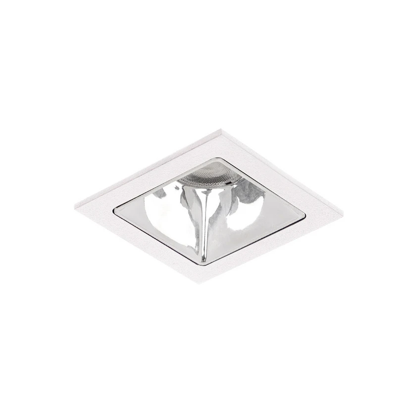 Apollo Micro LED recessed spotlight, smooth reflector, angular, DALI dimmable Equipped with recessing springs, the small, square Apollo Micro LED recessed spotlight can be installed in the ceiling without tools. The recessed spotlight can be used to fulfil a wide variety of lighting tasks and its restrained form and simple design make it suitable for any interior. The shiny silver, faceted reflector with rotationally symmetrical deep-wide light distribution makes the downlight particularly efficient, while the transparent plastic cover ensures optimum light distribution. The recessed lights in the Apollo series are the perfect lighting tool for electricians, planners and designers. They fulfil all standards and are particularly system-efficient. The recessed LED downlight is perfect for corridors, offices, conference rooms, shops, museums, reception areas and also private rooms - general colour rendering index CRI > 90 - service life L80/B10 at 25 °C: 50,000 h, service life L80/B50 at 25 °C: 50,000 h - housing material: aluminium / glass / plastic - permissible ambient temperature (ta): -20 °C - +25 °C - with electronic ballast, DALI dimmable.