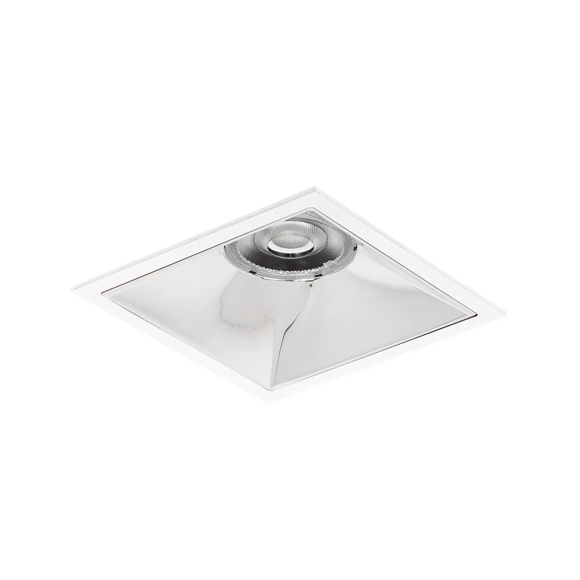 Apollo Midi LED recessed spotlight, smooth reflector, angular, DALI dimmable The square Apollo Midi LED recessed spotlight is an LED downlight that is supplied with a DALI dimmable ballast. It is fitted with installation springs so that it can be mounted without tools. The downlight set is particularly system-efficient thanks to its high-gloss, smooth silver reflector with rotationally symmetrical, deep-wide light distribution and a transparent plastic cover for optimum light distribution. Thanks to the wide range of models, the downlights in the Apollo series fulfil a wide variety of lighting tasks, from homogeneous illumination to setting precise lighting accents. Apollo downlights are the ideal lighting tool for electricians, planners and designers, they fulfil all standards and their application possibilities are endless - whether reception or corridor, office, conference room, shop or museum or private living space.