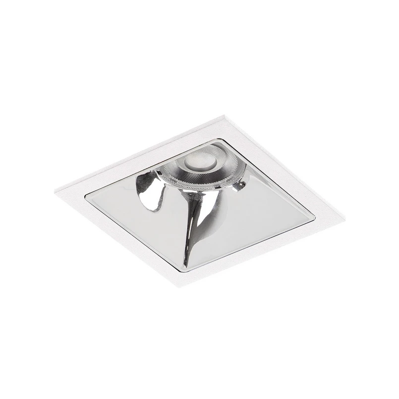 LED recessed ceiling spotlight Apollo Mini, smooth reflector, angular, with ballast, switchable The square LED recessed ceiling spotlight Apollo Mini can be installed in the ceiling without tools using the installation springs and is supplied ready for connection to 230 V with a switchable electronic ballast (not dimmable). The LED recessed spotlight has a smooth, silver reflector with rotationally symmetrical, narrow-wide beam light distribution and a transparent plastic cover, which ensures high luminous efficiency and optimum light distribution and makes the recessed spotlight particularly system-efficient. The Apollo Mini recessed spotlight and all other LED downlights in the Apollo range from BRUMBERG can fulfil a wide variety of lighting tasks in commercial and private areas, from homogeneous illumination to setting precise light points. They meet all standards and are a perfect lighting tool for electricians, planners and designers - general colour rendering index CRI > 90 - service life L80/B10 at 25 °C: 50,000 h, service life L80/B50 at 25 °C: 50,000 h - housing material: aluminium / glass / plastic - permissible ambient temperature (ta): -20 °C - +25 °C - with electronic ballast, switchable, not dimmable