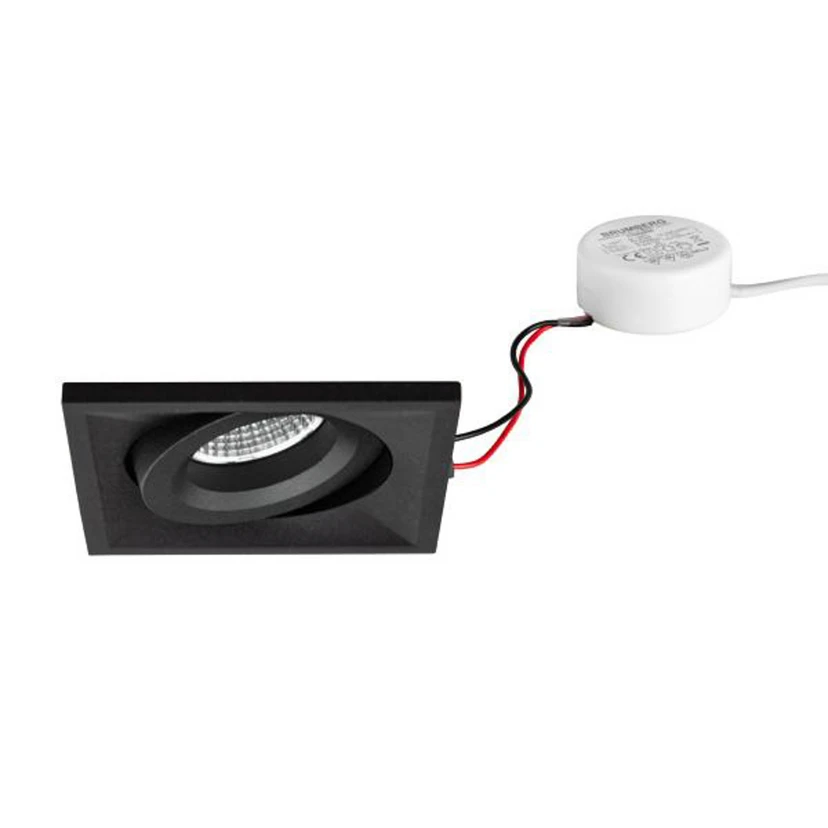 Square recessed spotlight with integrated LED driver BB37 is a recessed spotlight for tool-free ceiling installation using recessed springs. The reflector is silver with rotationally symmetrical deep-wide light distribution. Optimum light distribution thanks to a transparent polycarbonate cover. - Permissible ambient temperature (ta): -20 °C - 25 °C - With electronic control gear, dimmable Phase section