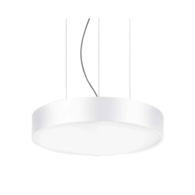 Biro Circle LED pendant light, round, 60 cm diameter, ballast on/off The Biro Circle round LED pendant light with an aluminium lampshade emits direct light downwards, which is optimally distributed in the room thanks to rotationally symmetrical deep-wide beam light distribution and an opal white plastic cover. It is equipped with a switchable ballast. Not only offices or meeting rooms, but also many other commercial areas and even the dining table or counter in the kitchen can be effectively illuminated with this high-quality light from BRUMBERG - general colour rendering index CRI > 80 - service life L70/B50 at 25 °C: 50.000 h, service life L80/B50 at 25 °C: 50,000 h - housing material: aluminium / steel / plastic - permissible ambient temperature (ta): -20 °C - +25 °C - with electronic ballast, switchable, not dimmable