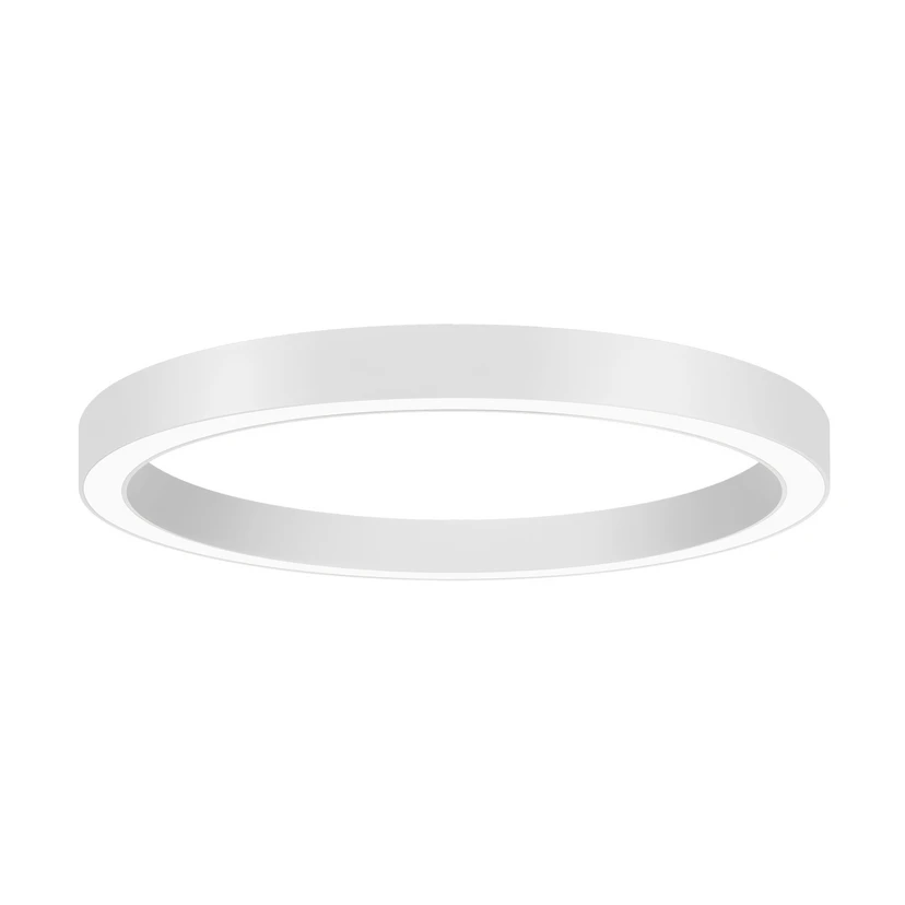 Biro Circle Ring LED ceiling light, 60 cm diameter, with Casambi module The Biro Circle Ring LED ceiling light is made of aluminium in the shape of a ring and is fitted with LEDs all around behind an opal white plastic cover. The light is emitted effectively and evenly through the opal plastic cover with a rotationally symmetrical, narrow-wide light distribution. The light is equipped with an electronic ballast with Casambi module so that the light can be controlled and dimmed using a smartphone, tablet or smartwatch via the Casambi app, which is available free of charge for Android and IOs.