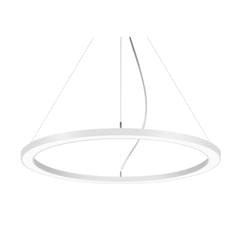 LED pendant light Biro Circle Ring 60 cm, height 3.5 cm, with ballast on/off A flat aluminium ring forms the lampshade of the Biro Circle Ring LED pendant light. Behind the opal white plastic cover, which ensures optimum light distribution, LEDs have been installed all round, emitting powerful downward light thanks to rotationally symmetrical, deep-wide light distribution. The pendant light is not only a very good choice for lighting office or conference rooms - the light also perfectly illuminates other commercial areas or even a table in a private setting. The filigree suspension using fine steel cables on the round canopy makes the lampshade almost float in the room - with electronic ballast, switchable - not dimmable - general colour rendering index CRI > 80 - service life L70/B50 at 25 °C: 276,000 h, service life L80/B20 at 25 °C: 153,000 h - housing material: aluminium / steel / plastic - permissible ambient temperature (ta): -20 °C - +25 °C