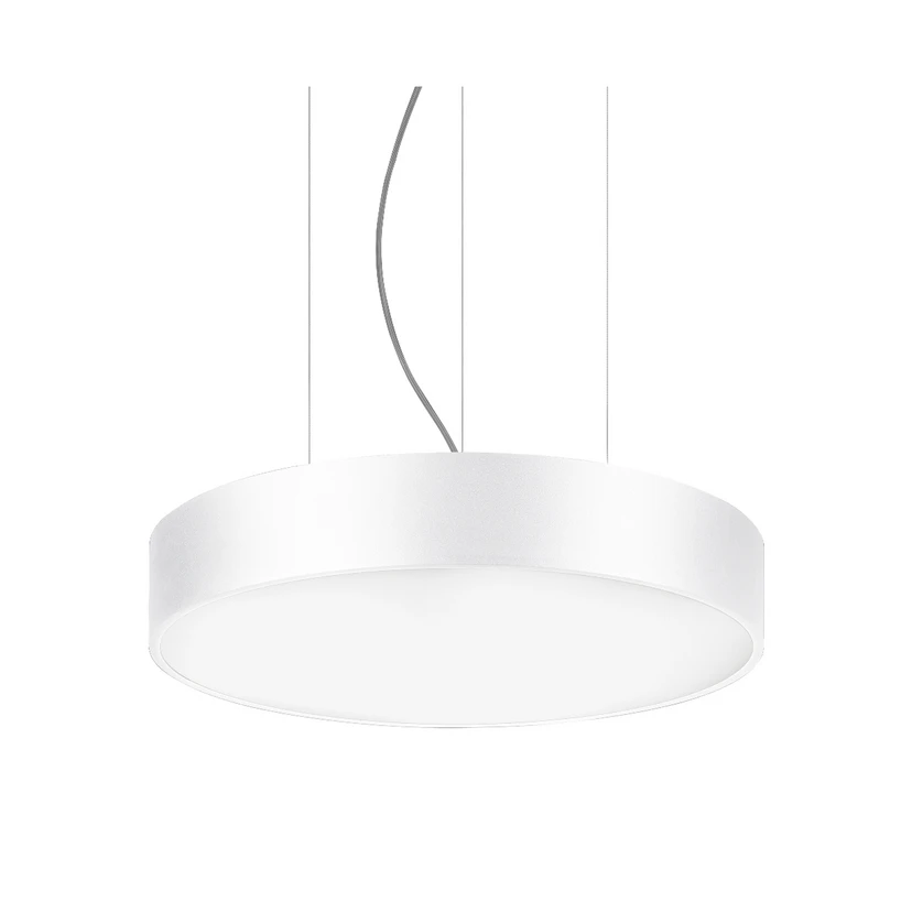 Biro Circle LED pendant light, diameter 60cm, DALI ballast Biro Circle is a round LED pendant light with a flat aluminium shade that is closed at the bottom with an opal white plastic cover for optimum light distribution. The luminaire is suspended directly from the ceiling on three steel cables, which can be shortened and are very discreet, so that the lampshade of the Biro Circle pendant light almost appears to float - with rotationally symmetrical deep-wide beam light distribution - general colour rendering index CRI > 80 - service life L70/B50 at 25 °C: 50.000 h, service life L80/B50 at 25 °C: 50,000 h - housing material: aluminium / steel / plastic - permissible ambient temperature (ta): -20 °C - +25 °C - with electronic ballast, DALI dimmable