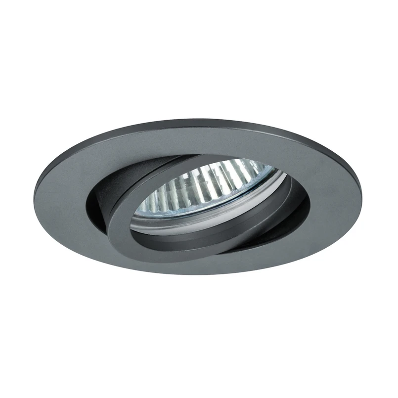 Tirrel-R recessed spotlight with GU10 socket The round Tirrel-R LED recessed spotlight is made of Massive aluminium and equipped with a GU10 socket for fitting a bulb of your choice. The spotlight has a classic, understated design and can be swivelled by 20° to direct the light cone. It can be mounted without tools using installation springs and is equipped with a bracket for standard-compliant strain relief - Housing material: aluminium - Protection class (EN 61140): II, IP code (DIN EN 60529): IP20 - Swivelling range 20° - Without visible snap ring