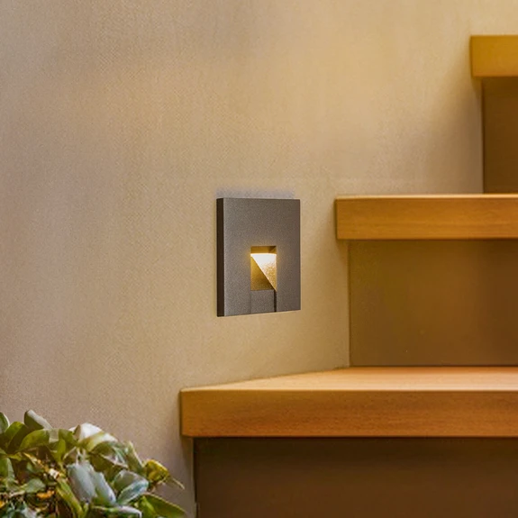 Wall Kit68 recessed light for appliance boxes - square and with recessed LEDs This recessed light has a simple square design and is made of aluminium. Wall Kit68 has a light opening in which the LEDs are positioned slightly recessed in the light. These provide a warm white orientation light, which is particularly welcome in staircases and corridors. The luminaire is installed in appliance boxes, where Wall Kit68 is connected to the 230 V output - Minimum size of appliance box: Ø 6.8 cm, depth 6.5 cm - Includes ballast - Supplied without appliance box