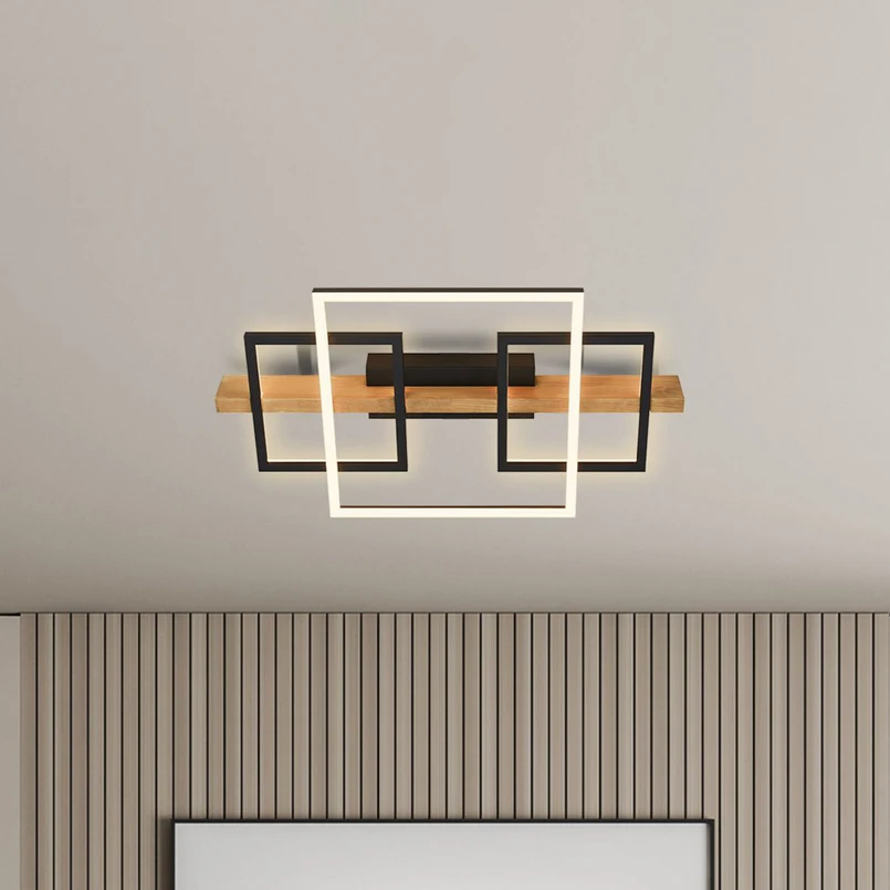 Cadre LED ceiling light, 3000K, 55cm, black, wood