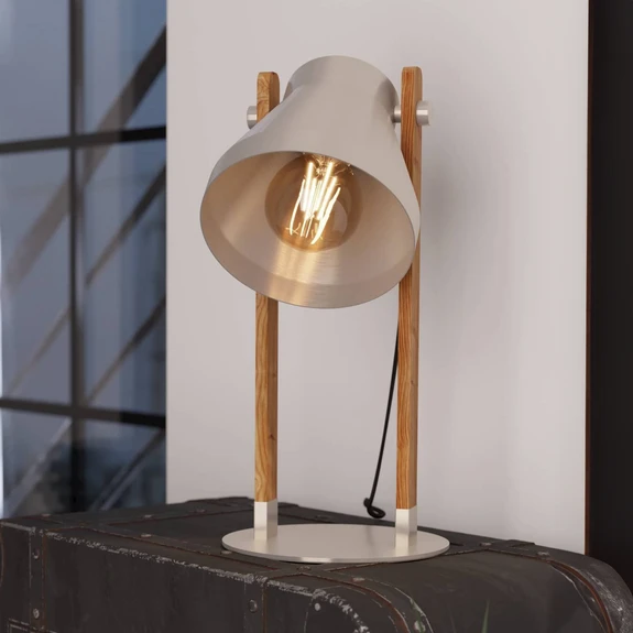 Cawton table lamp, height 38 cm, steel/brown, steel/wood