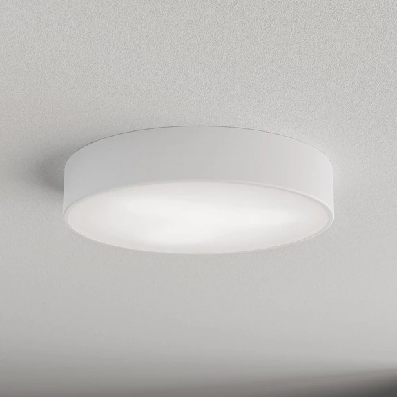 The IP code 54 guarantees that the lamp is ideal for indoor use in bathrooms and hallways as well as for outdoor areas such as balconies and terraces. The stylish white surface of the metal ceiling lamp blends seamlessly into modern interior design concepts and creates a pleasant atmosphere.