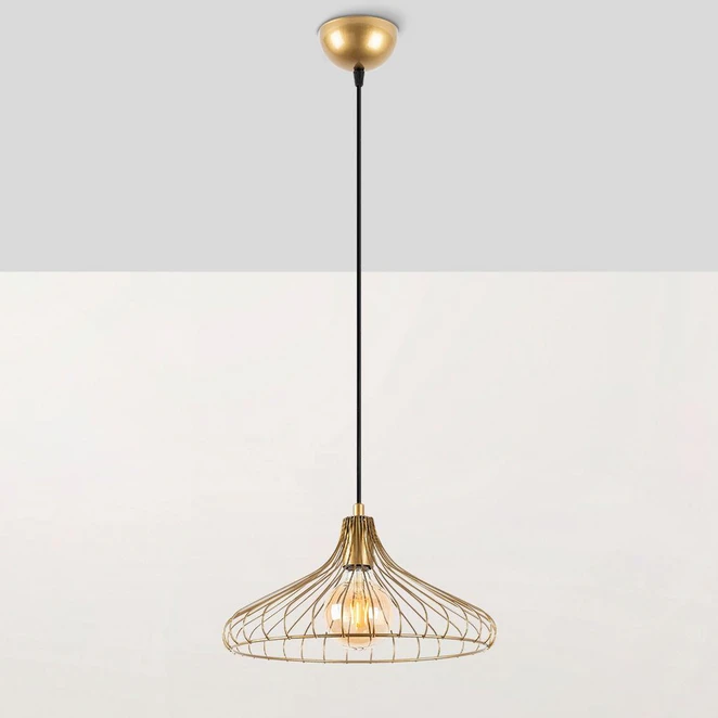 The Depay pendant light impresses with its stylish metal design in an elegant golden colour. This light is an eye-catcher in any room, whether in the living room, dining room or kitchen. With its timeless design, it blends seamlessly into various interior styles and adds stylish accents.