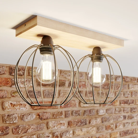Dorett ceiling light: harmonious combination of oak wood and 2-bulb design