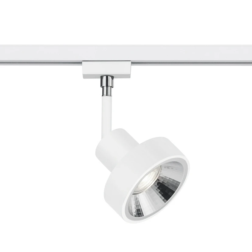 GU10 spotlight with wide head for DUOline two-circuit track This modern spotlight is ideal for wide-area lighting - especially with the choice of a wide-angle GU10 bulb (see accessories). The wide head is lined on the inside with a reflector. Thanks to its use in the DUOline two-circuit track lighting system, the spotlight can be moved as required; the all-round swivelling mounting allows the light to be aligned.