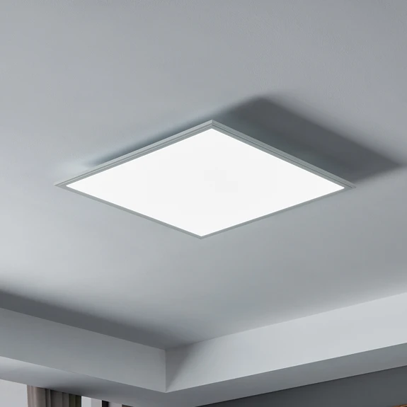 EGLO connect CCT LED ceiling light - square panel with white light control Simple in design and versatile in lighting control, this LED ceiling light with a slim, square aluminium frame is ideal for large-scale general lighting in numerous environments. The integrated LEDs can be conveniently controlled using your own smartphone/tablet with the appropriate App via Bluetooth. The colour temperature can be set in a spectrum from warm white to daylight white, and stepless dimming is also possible. Functions / compatibility - modern Bluetooth Mesh technology with protected network and transfer of commands between devices - controllable with free Smart Control App by AwoX (available for iOS and Android) - controllable with the matching EGLO connect remote control (not included) - dimmable - white light control: warm white (2,700 K) - daylight (6,500 K)