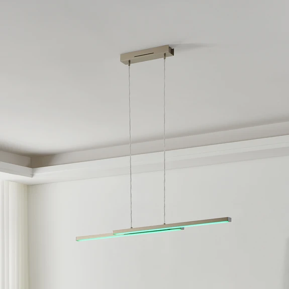 Fraioli-Z LED pendant light with smart control option - via App, voice assistant or remote control Ideal for modern table lighting, for example in the living room, dining room or kitchen, the smart controllable Fraioli-Z LED pendant light offers both white and coloured light in countless colour variants. This means that the right light can be created for any time of day, any occasion and any mood, conveniently via an App or classically with a suitable remote control (see accessories). Control is also possible via a compatible voice assistant. Connection to Amazon Alexa and Google Home is possible directly and without additional devices. Functions / compatibility: - controllable with the free AwoX HomeControl App - compatible with smart home systems from other manufacturers that use ZigBee 3.0 - direct connection with Amazon Echo and Google Home possible - increased range thanks to additional Bluetooth Mesh - compatible with all articles from the EGLO connect-c Bluetooth series - suitable remote control even without Internet access (see accessories)