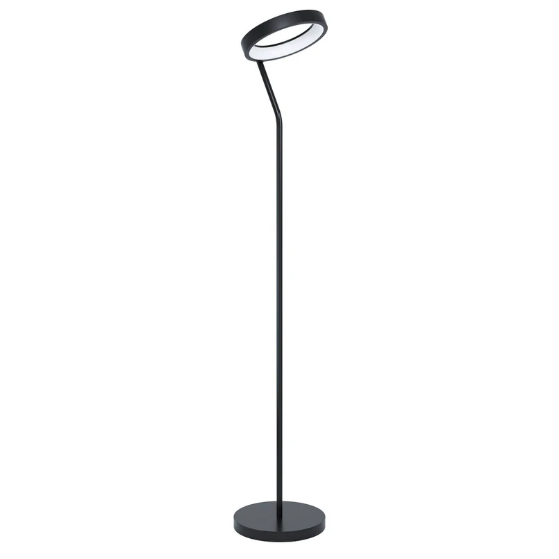 The black LED floor lamp Marghera-Z consists of a narrow frame with a ring-shaped shade, which is equipped with smart controllable LEDs on the inside. These can be dimmed or also switched in the light color from warm white to daylight, as well as in colored light. The control takes place within the smart home system EGLO connect-Z via a suitable app, which offers further comfort funkionen. A direct connection to Google Home or Amazon Echo enables convenient voice control.