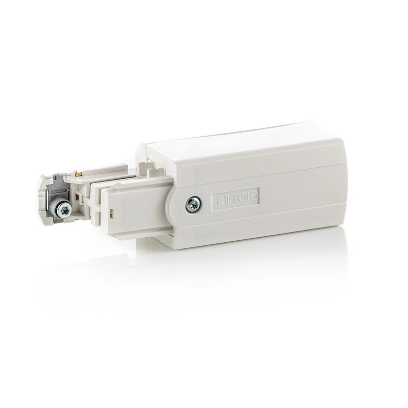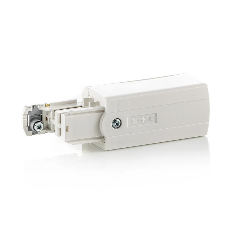 Not only the power supply, but at the same time a perfectly fitting termination, this is the end feed on the left for the 3-phase busbar Noa. The end feeder is colour-matched.