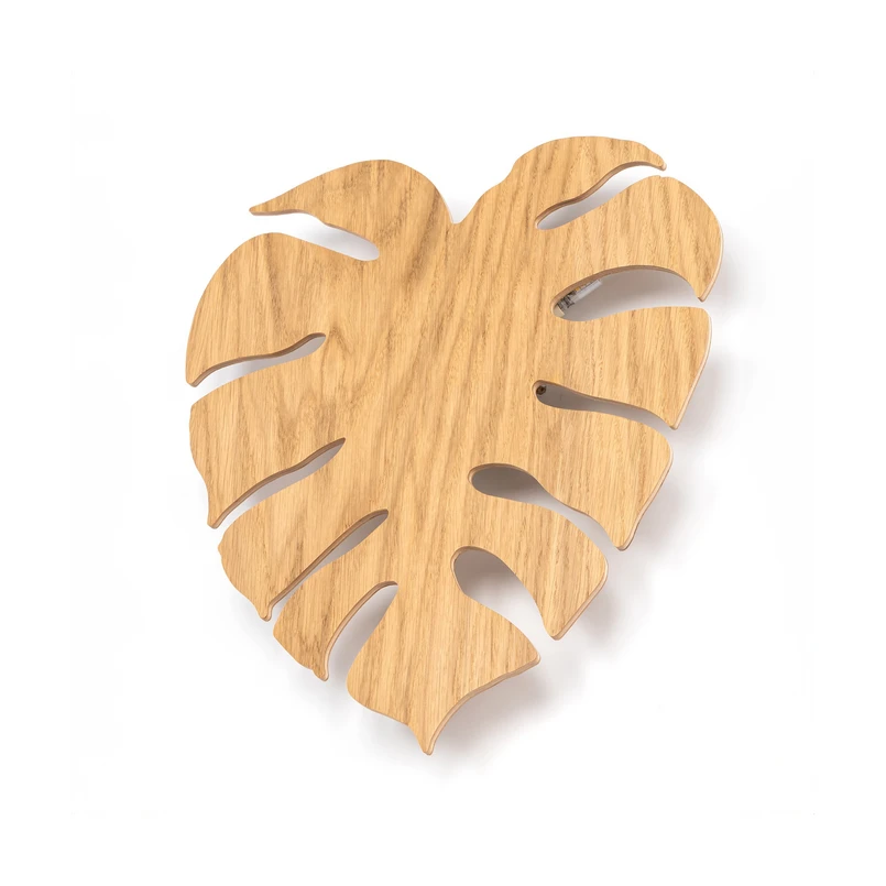 Folah wall light made of light-coloured wood, designed in a tropical leaf shape The Folah wall light looks absolutely natural, not only because of the use of light-coloured wood, but also because of its shape: the flat body features the silhouette of a leaf from the popular houseplant Monstera Deliciosa. There are three G9 sockets at the back; the light from the G9 bulbs (not included) provides pleasant, indirect lighting. The Folah wall light is a product of the Envostar brand and is manufactured in Europe. This minimises transport routes and CO2 emissions. The packaging of the light is also sustainable - disposable materials such as plastic, polystyrene and plastic film are avoided.