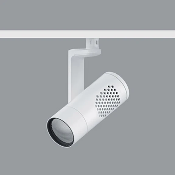 For ERCO's 48 V Minirail track system, this version of the Eclipse S LED spotlight provides an equipment variant for large-area illumination of business, conference, recreation, passage, exhibition and sales areas. The light of the integrated high-power LEDs is spread over a very wide area thanks to the collimator optics made of optical polymer and a darklight lens. Made of aluminium, the cylindrical-shaped luminaire head is attached to the track adapter with an extension arm; the attachment points allow it to swivel 270° and rotate 360°. The Casambi Bluetooth module allows operation via app on the smartphone/tablet.