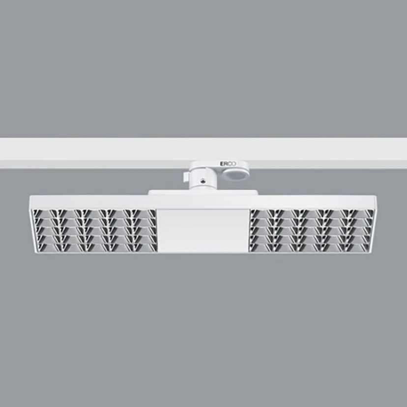 - Anti-glare louvre: plastic, aluminium-coated, silver, highly specular - with track adapter for ERCO three-circuit track, Hi-trac three-circuit track and single-circuit point outlet - standard-compliant glare control for VDU workstations: UGR < 19 - connected load: 19 W - with dimmable ERCO ballast - dimmable with rotary switch on the light or external dimmers (phase cut-off)