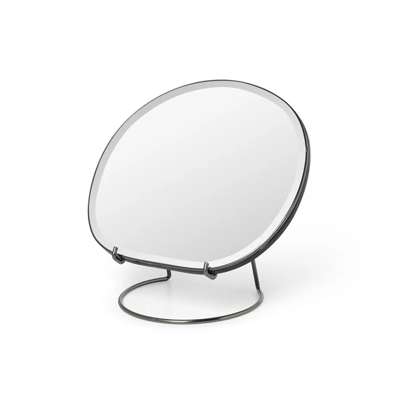 Pond table mirror with removable stand The Pond mirror on a narrow, removable metal stand with its asymmetrical outline plays with shapes to create a fascinating twist on classic design. Inspired by the free-flowing movement of water, the organically shaped mirror is suitable for all living areas, from the dressing table in the bedroom to the wardrobe in the hallway and the bathroom, where it elegantly reflects your daily routines. product information: Mirror glass on MDF support with zinc frame. The mirror can be removed from the standing star. care instructions: Wipe with a soft, damp cloth or clean carefully with a soft sponge and mild detergent.