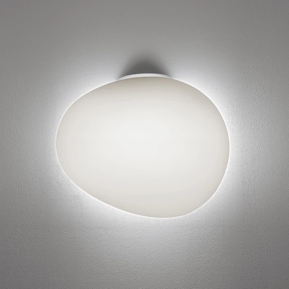 The wall lamp Gregg semi 1 looks like a shining pebble, which got its smooth surface and asymmetrical shape from the water of a river. This flowing shape and the otherwise rather unobtrusive design allow the luminaire to blend harmoniously into any environment. The curved shade is made of mouth-blown, acid-etched glass, which is satin-finished to ensure diffuse and glare-free light distribution.