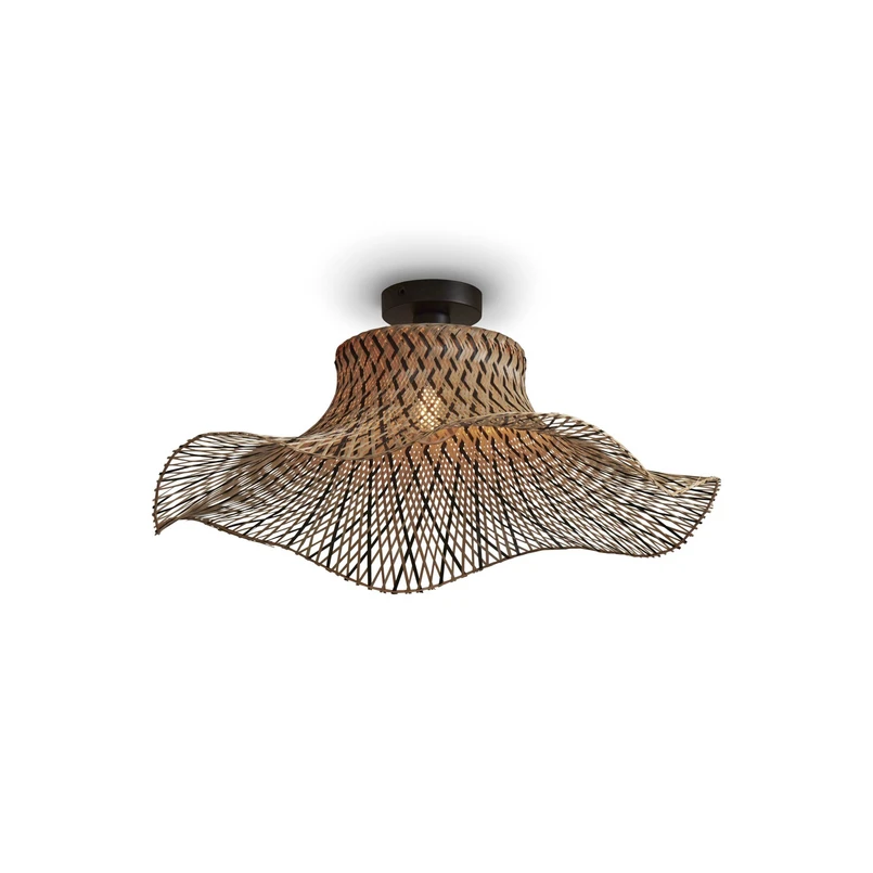 Ibiza ceiling light with hand-woven bamboo shade Fine bamboo struts were hand-woven into the shade of the Ibiza ceiling light, resulting in the beautifully shaped shade of the light, reminiscent of a sun hat with wavy edges. The ceiling lamp is a product of the label Good & Mojo, which sells sustainable lamps and thus does good for people and the environment. Plant-based lighting with an urban touch with an aesthetic that unites nature and the city and leaves the smallest possible ecological footprint - these are the products of Good & Mojo, a brand of the Dutch manufacturer It's about Romi. The shade of the Ibiza lamp series is made of bamboo, an extremely robust and flexible material that grows very quickly and is cultivated without fertilisers and other chemical pesticides. Through the partnership with Eden Reforestation Projects, a tree is planted for every lamp sold, so that by now more than 150,000 trees could be planted by Good & Mojo. In addition, the label is a partner of the WakaWaka Foundation, an organisation that provides solar lights to people in various regions away from electricity grids.