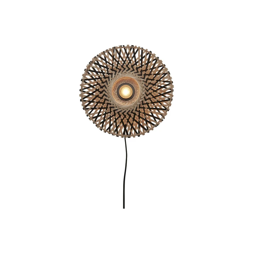 Round Kalimantan wall light with cable and switch This round wall lamp is a unique lighting element that is made from natural materials and retains the same natural colouring. Kalimantan impresses with its woven lampshade made of flexible, sturdy bamboo, which is considered a sustainable material. The plant can be cut off again and again and grows back very quickly, it also produces a lot of oxygen and its texture is impressive. All the struts of the pattern run into the centre of the round light, where a circular recess has been incorporated. The bulb sits in this recess, is completely visible and emits the light directly. It also escapes into the body of the light, where it then shines through the gaps and creates a unique light pattern in the room. Kalimantan is connected via a plug-in cable with an integrated switch for effortless operation. Good & Mojo is a brand of the Dutch company It's about RoMi, which began working with sustainable materials in 2010. This project gave rise to the company's own sustainable brand Good & Mojo, which was launched on the market in 2016. Das is also involved in social projects and advertises the fact that a tree is planted for every product sold.