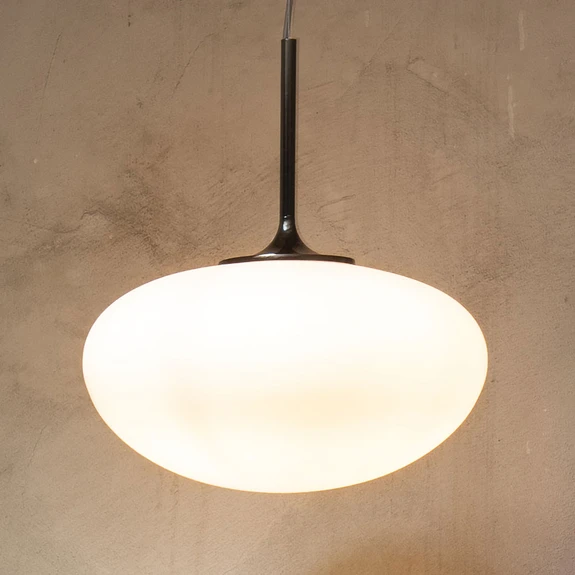 Subtle Stemlite pendant light with opal glass globe The Stemlite pendant light has the charm of a timeless classic. The organic shape is convincing across the board. The matt white glass makes the light glare-free and pleasant. This makes the pendant light ideal for use in the dining room or living room, but it would also make an excellent lighting object in a café thanks to its bold aesthetics. Thanks to its simple elegance, this modern light can be perfectly integrated into various furnishing concepts and creates a cosy atmosphere in the room. Stemlite was designed by the American designer Bill Curry (1927-1971), who captured the zeitgeist of the 1960s in his iconic design. He was one of California's leading designers, who died at the age of just 43.