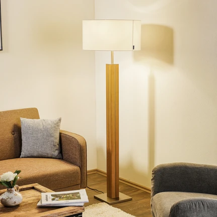 Dana floor lamp - imposing and high-quality A large textile shade, metallic brackets and a Massive wooden base give Dana a solid, powerful character, which the floor lamp rounds off with a lush lighting effect, making it a real statement in the interior. The product, which is manufactured in Germany by HerzBlut, can also be fitted with three E27 bulbs, which provide effective ambient lighting from the vertically open cylindrical shade. The modern, uncluttered Basis is given an additional cosy and natural touch with the use of wood. HerzBlut's contributions to environmental protection - CO²-neutral energy supply for the company's sites and production - Made in Germany - Regional suppliers - Product certification for wood according to FSC - Environmentally friendly packaging - Advertising material made exclusively from Natur materials - Lights are made from natural and renewable raw materials - The LEDs can be replaced by the manufacturer - Light parts are 100% recyclable - In-house repair workshop