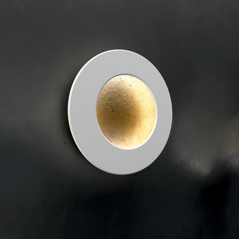 Round LED wall lamp Vera with large, movable ringIndirect, adjustable light and minimalist as well as stylish design are combined in the LED wall lamp Vera. The luminaire series was designed by Marco Pagnoncelli for the Italian manufacturer ICONE; the leitmotif is the round design. This wall lamp is divided into a round wall cover and a slightly larger ring with LEDs integrated on the back. The ring can be rotated along the cover and swivelled forwards to a horizontal position so that the design can be individually adapted and the light can be used to indirectly illuminate the room via the wall and/or ceiling.- externally dimmable via Triac- good colour rendering: CRI 90- can also be used as a ceiling luminaire