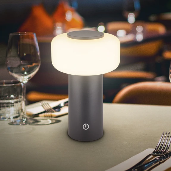 Juna LED rechargeable table lamp, anthracite, IP44, dimmable, 20 cm