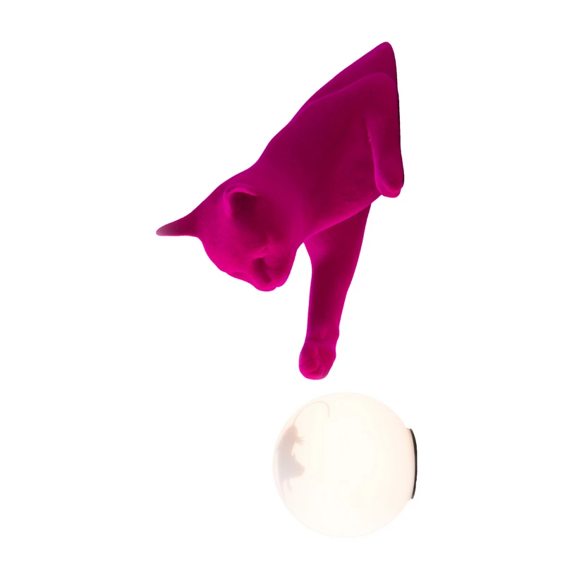 Karman Maoo wall light, ceramic fuchsia, glass, cat figurine