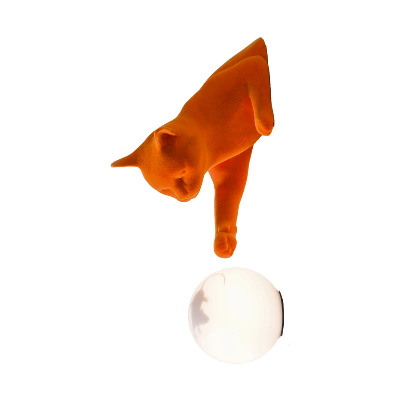 Karman wall light Maoo, ceramic orange, glass, cat figurine